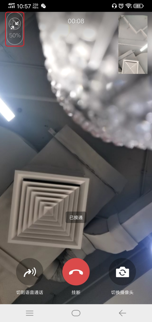 第六步,视频接通后,在通话界面的左上角,就会出现一个有人脸的图标了。