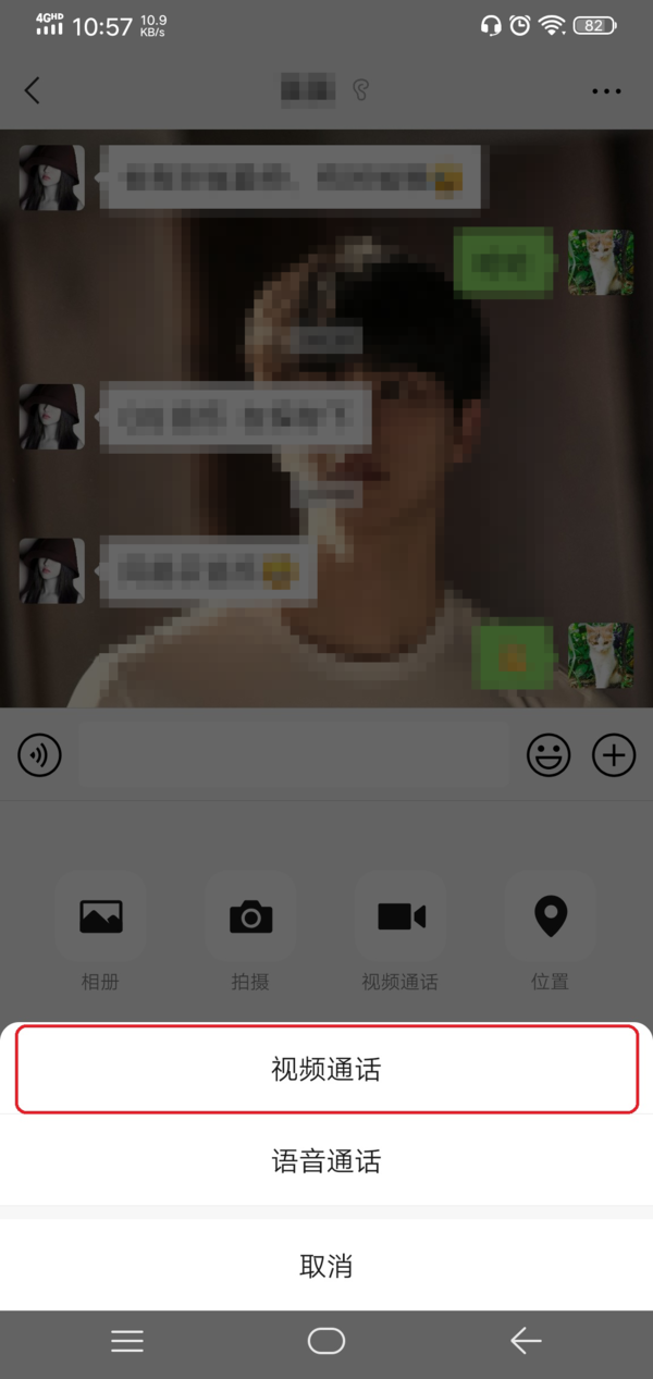 第五步,回到微信的界面当中,然后找到想要进行视频聊天的好友,然后选择视频通话。