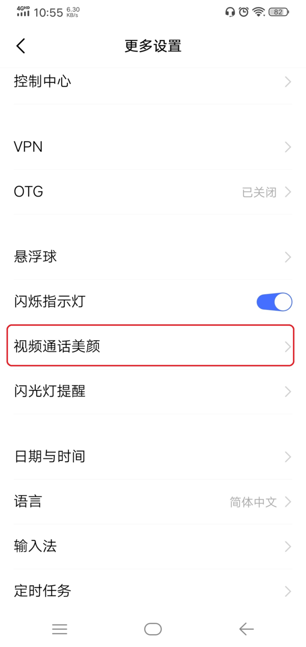 第二步,进入到手机的更多设置界面当中后,找到【视频通话美颜】选项,并点击打开。