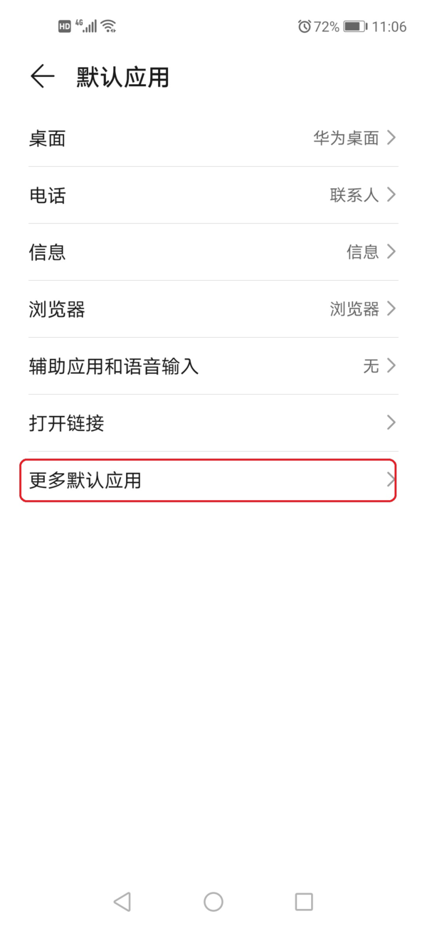 第三步,进入到默认应用界面后,找到【更多默认应用】选项,并点击进入。