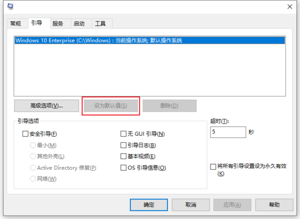 选择需要设置为默认启动的系统,将其设为默认值,之后点击确定即可。