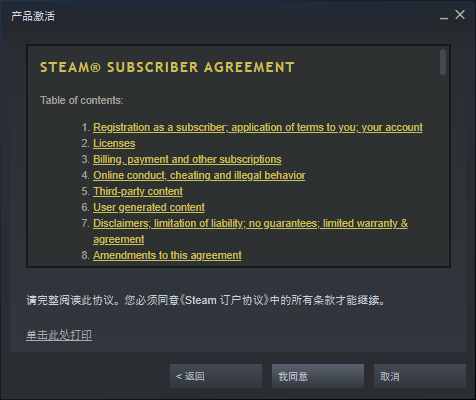 阅读Steam协议后,点击我同意。