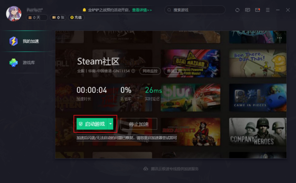 成功加速后,点击启动游戏并登陆Steam。