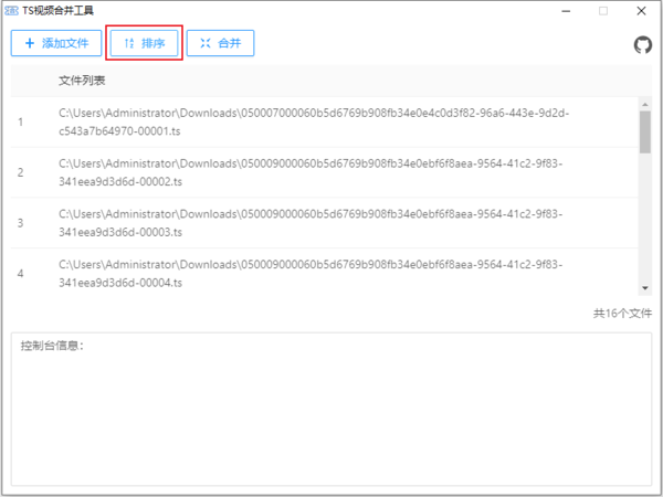 完成TS格式视频文件的添加后,点击排序,将视频文件按照顺序排列。