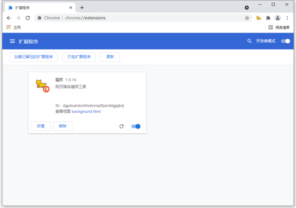 首先下载猫抓插件并安装到浏览器的扩展程序中。