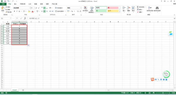 第七步,接着我们将鼠标的光标放到B2单元格的右下角底部,待光标变成黑色的十字后,双击它,便可以进行数据向下的填充了,此时我们便可以获得我们想要的四舍五入保留整数的所有数据了。