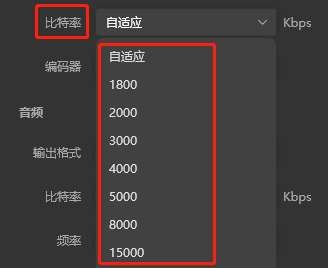 3.比特率:与帧速率类似,也是对比特数值进行调节,不建议选择太高的数值。