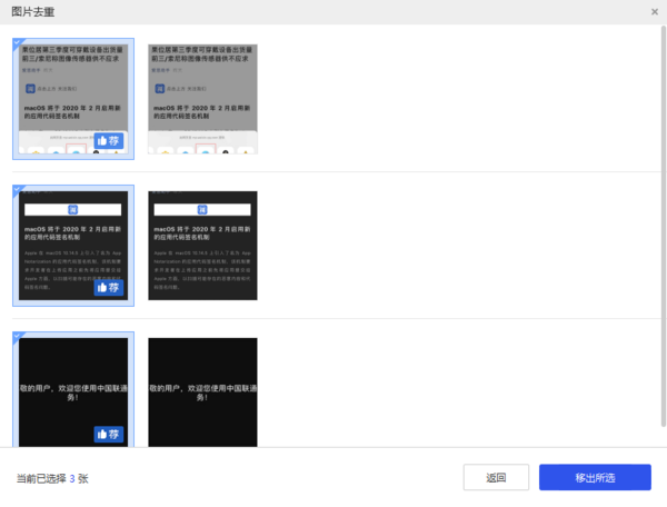 确认需要导出的照片之后,点击移出所选,即可将筛选出的图片保存到之前设置的文件夹中。筛选后的重复图片依旧保留在原文件夹中,可以删除来节省空间占用。
