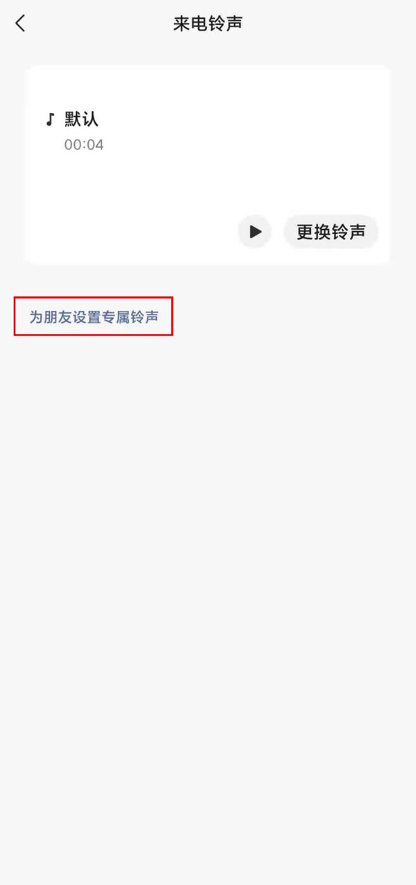 在来电铃声设置中,默认采用的时长4秒的铃声,点击下方为朋友设置专属铃声,选择需要设置的好友即可进行铃声设置。