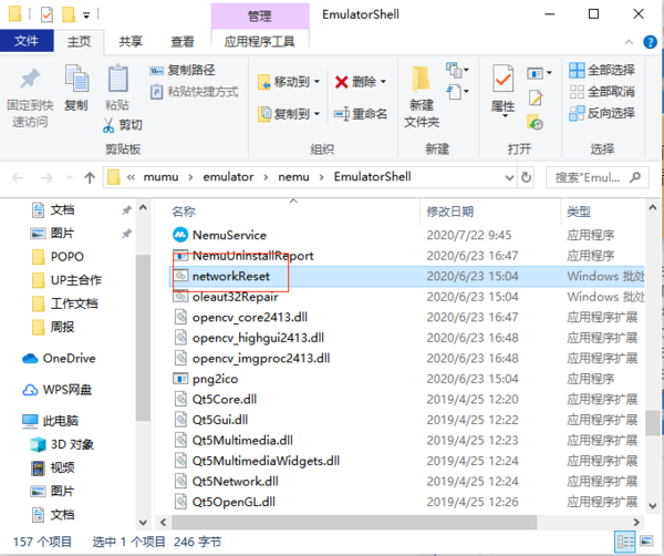 确认未开启飞行模式后,右键点击模拟器进入安装目录,找到networkReset.bat文件,并以管理员身份运行。