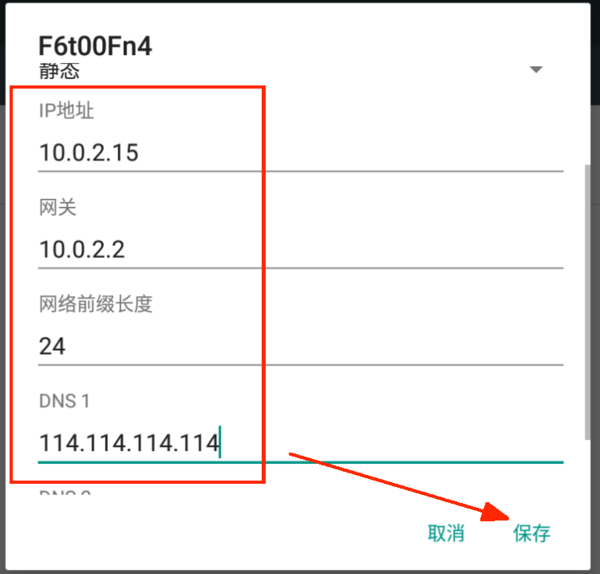 将IP设置为静态,之后如图进行修改,修改完毕后点击保存。