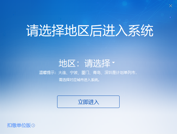 进入使用之前我们要先选定地区,一旦确定进入软件后地区就不能再更改了,并且,使用之前要先正确填写纳税人识别号后,否则无法进行缴费等功能,这两点需要使用者多加注意。