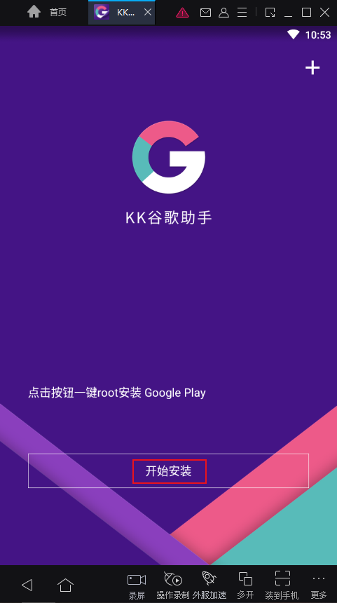 等待KK谷歌助手完成设备检测后,点击下方的开始安装。
