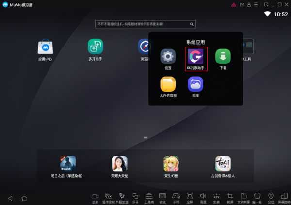 首先打开MUMU模拟器,点击系统应用,选择KK谷歌助手。