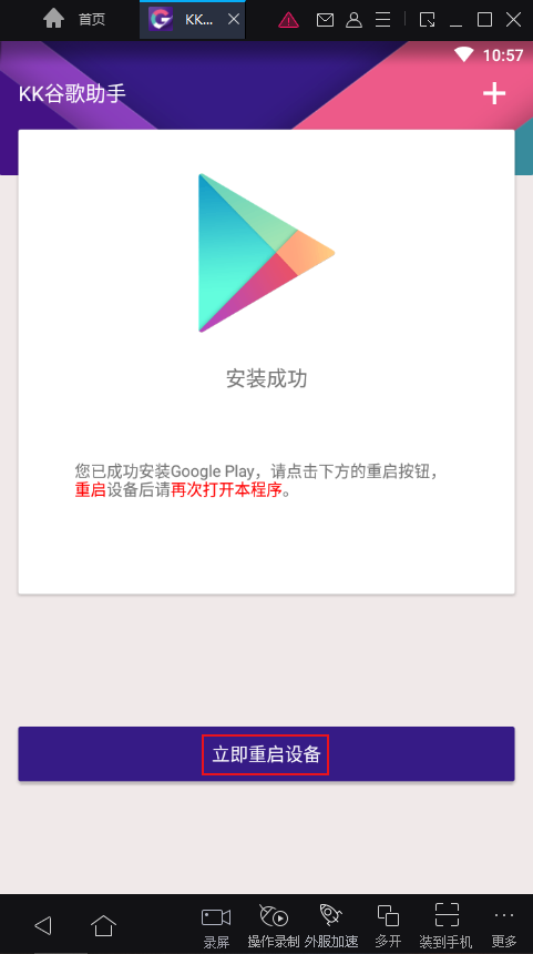 完成谷歌服务的安装后,点击下方的立即重启设备。