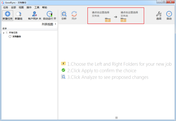 以上就是使用GoodSync创建备份任务的方法,创建备份任务后,设置好需要备份的文档和备份位置,之后进行文档分析和备份即可,对于经常改动的文档,还可以设置自动备份,省去手动操作的麻烦。