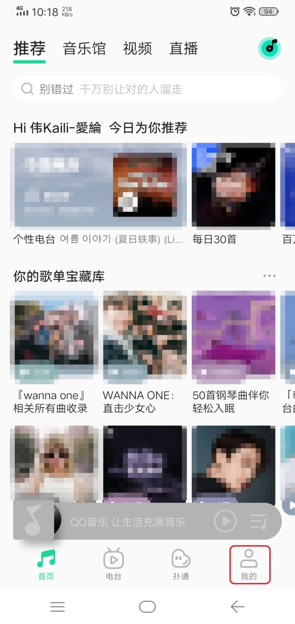 第一步,打开手机上的QQ音乐软件,进入到软件的主界面当中后,找到界面底部右下角的【我的】选项,并点击进入。