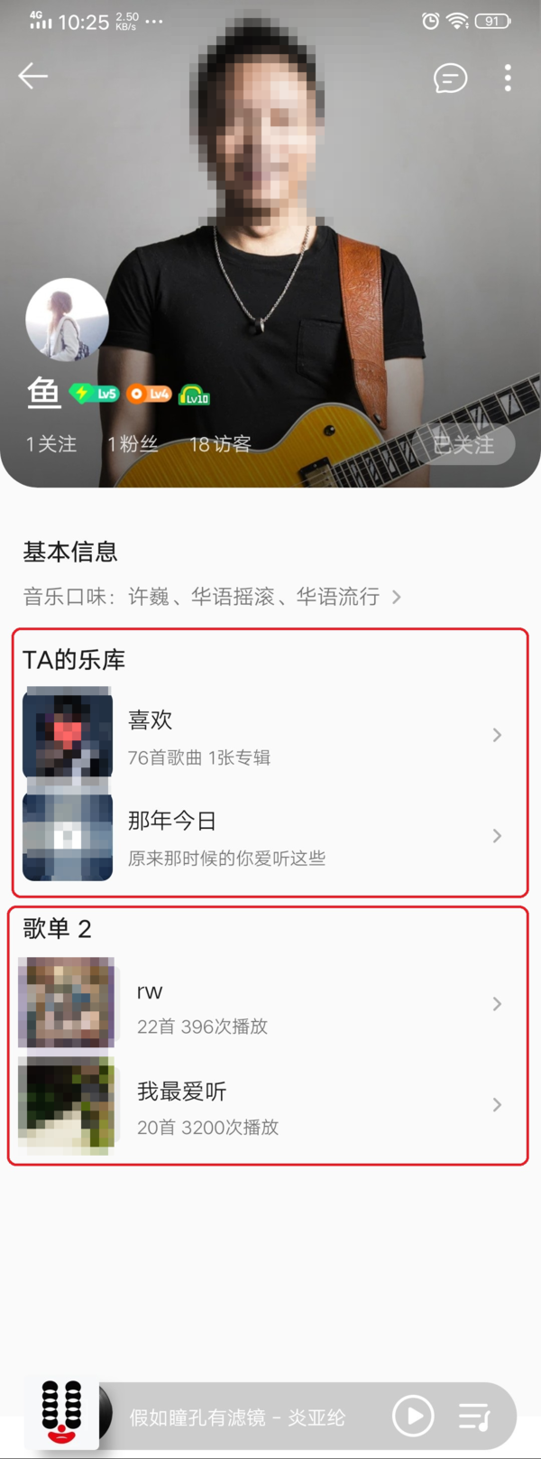 第五步,接着我们就进入到QQ好友的QQ音乐的界面当中了,此时在该界面的【TA的乐库】和【歌单】中,我们就可以知道好友爱听谁的歌曲了。