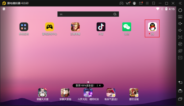 首先打开雷电模拟器,点击需要使用的应用并登录。