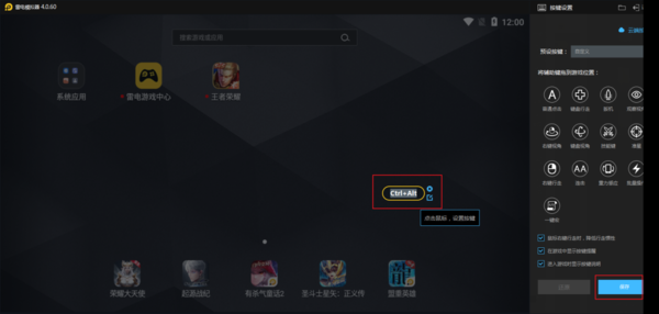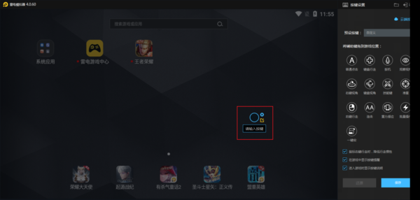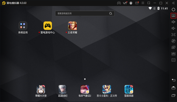 首先打开雷电模拟器,点击右侧的键盘操控按键。