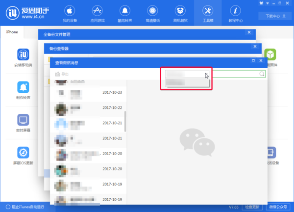 第七步,同时通过备份查看器,我们还可以查看聊天记录,并且还能够切换账号来进行查看。