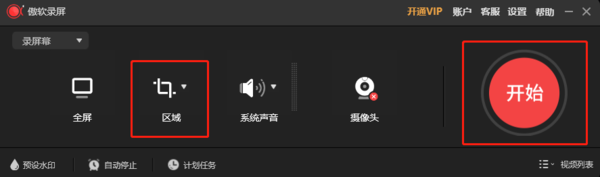想要在电脑上使用ApowerREC傲软录屏来录制视频的小伙伴,在打开傲软录屏客户端之后,直接点击窗口中的“开始”键就能录制屏幕。如果不想录制全部屏幕,也可以点击“区域”按钮,先框选录制的窗口再点击“开始”键来录制屏幕。