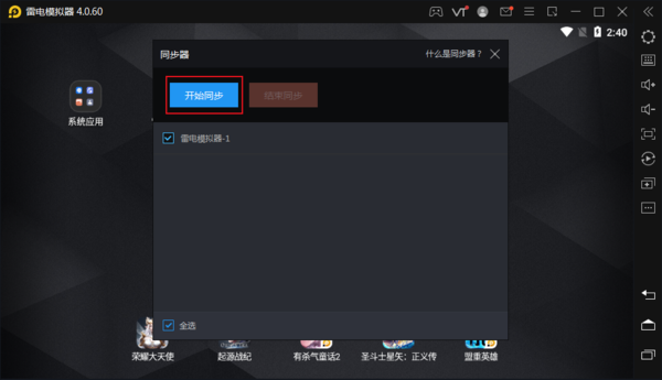 模拟器多开成功后,点击右侧的同步器。
