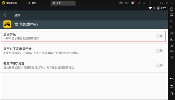 以上就是在雷电模拟器中关闭应用通知的方法,关闭应用通知后,可以有效减少CPU占用,降低卡顿问题的出现几率,让其他应用的运行更稳定。
