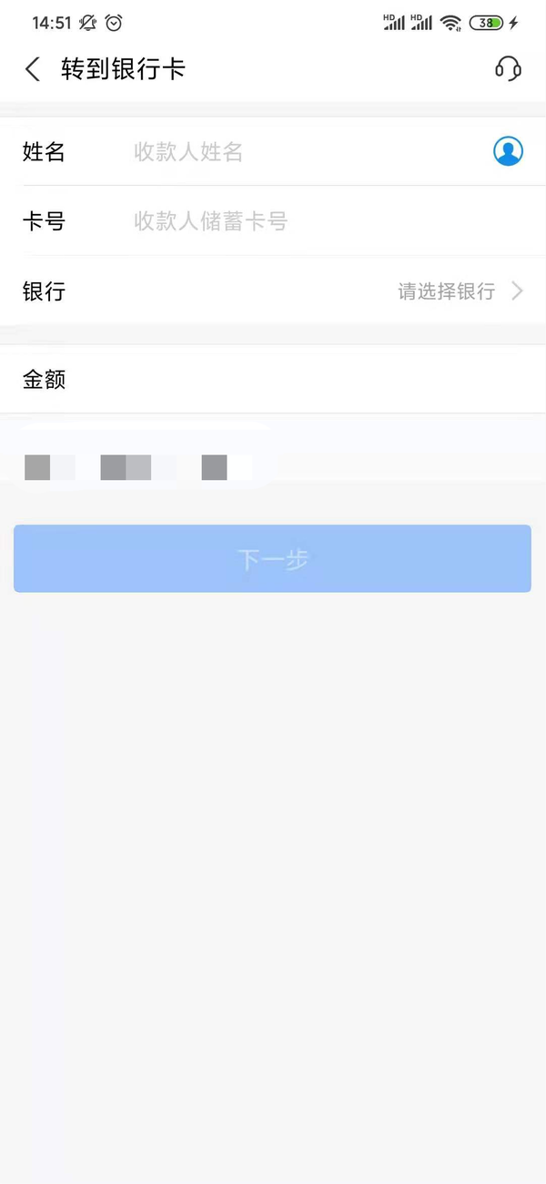 第三步,进入转账界面,输入收款人信息再点击下一步即可。