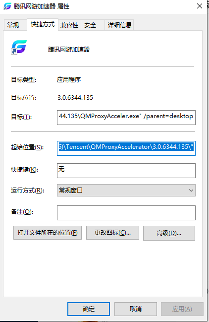 首先点击加速器桌面图标,在属性中查看加速器是否安装在英文目录下。