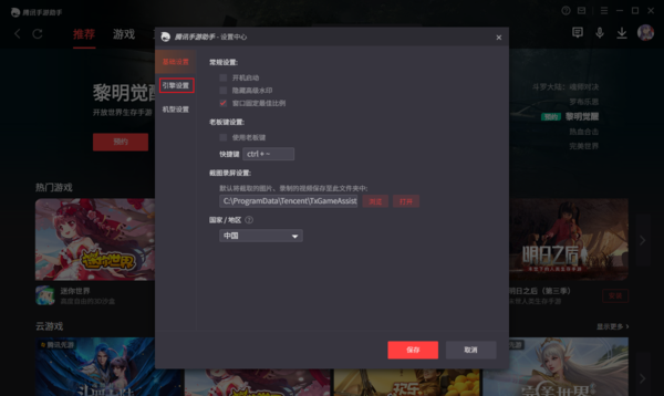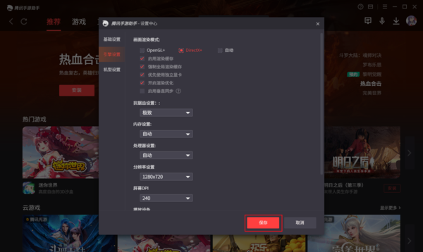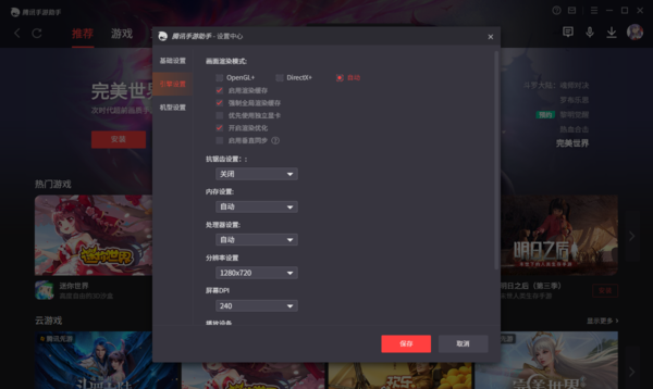 在引擎设置中,我们可以对画面渲染模式、画质、分辨率、内存等进行调整。
