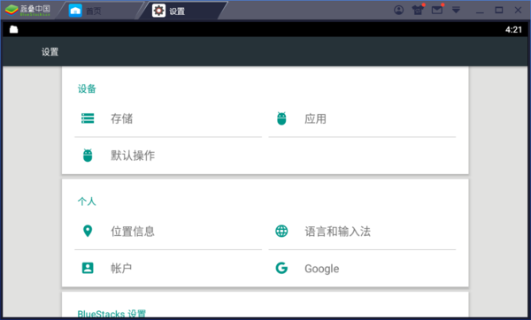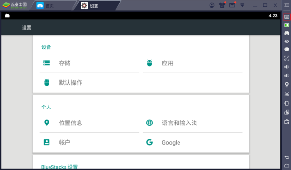 首先打开蓝叠模拟器,进入游戏或设置界面。