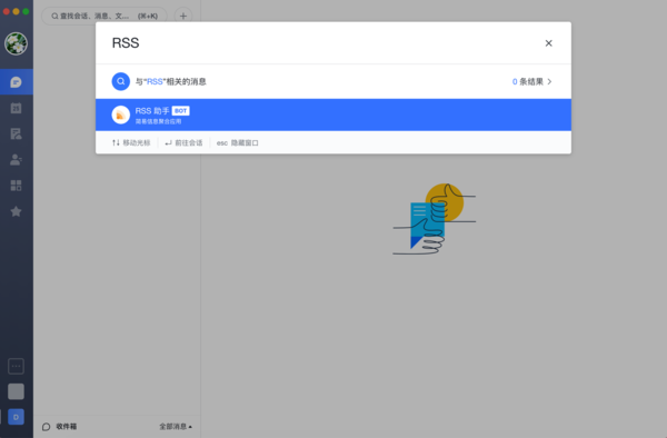 进入飞书,在左上角搜索栏中搜索RSS助手。