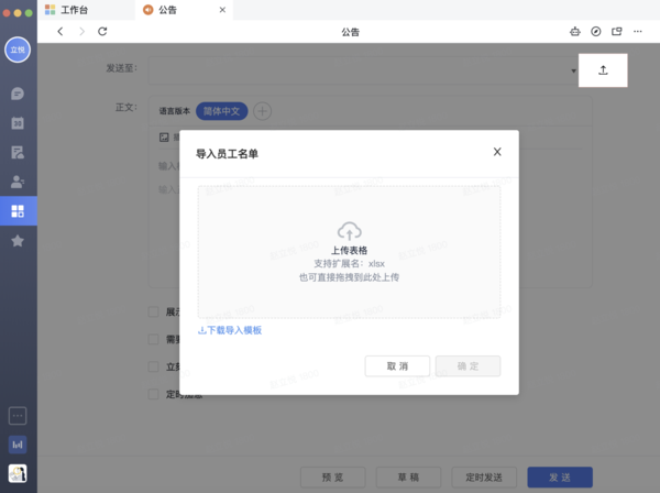 除此之外,可以通过?Excel?导入员工名单,达到定向发送的效果。