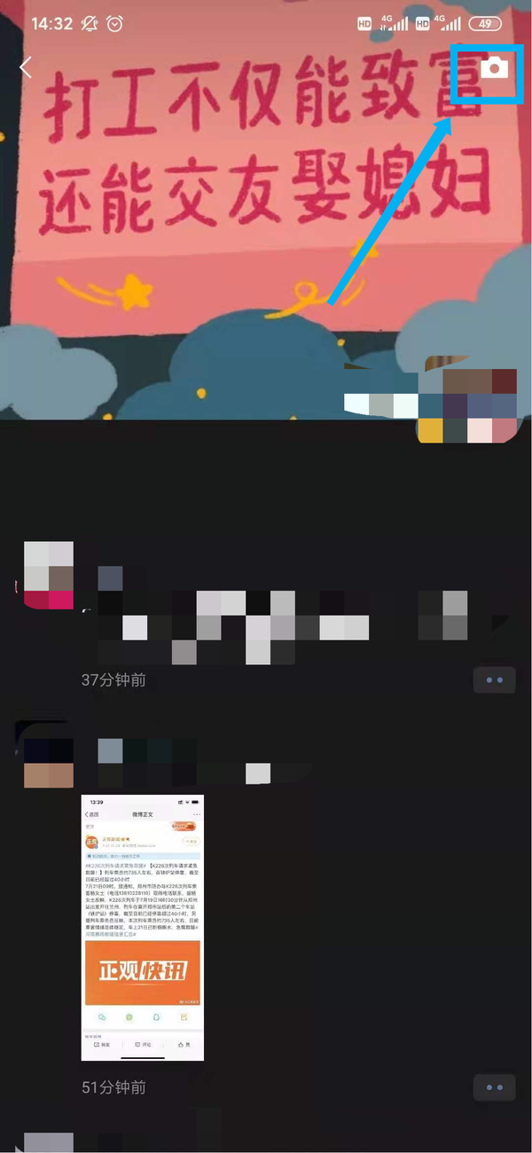 第二步,在朋友圈右上角有一个照相机,长按照相机按钮;