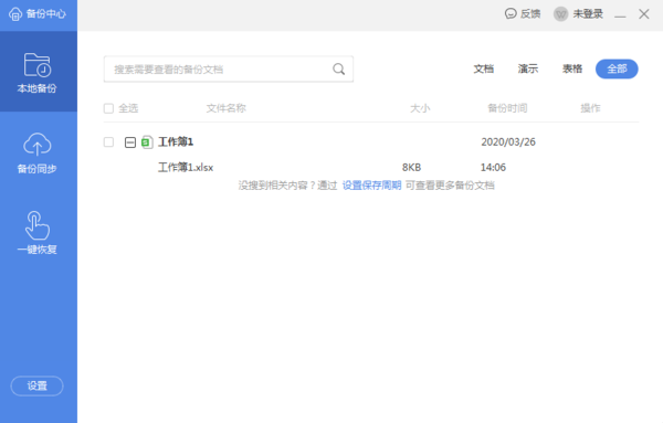 设置完毕后,再次使用WPS时系统就会自动进行备份,备份好的文件可以在备份中心的本地备份中找到。
