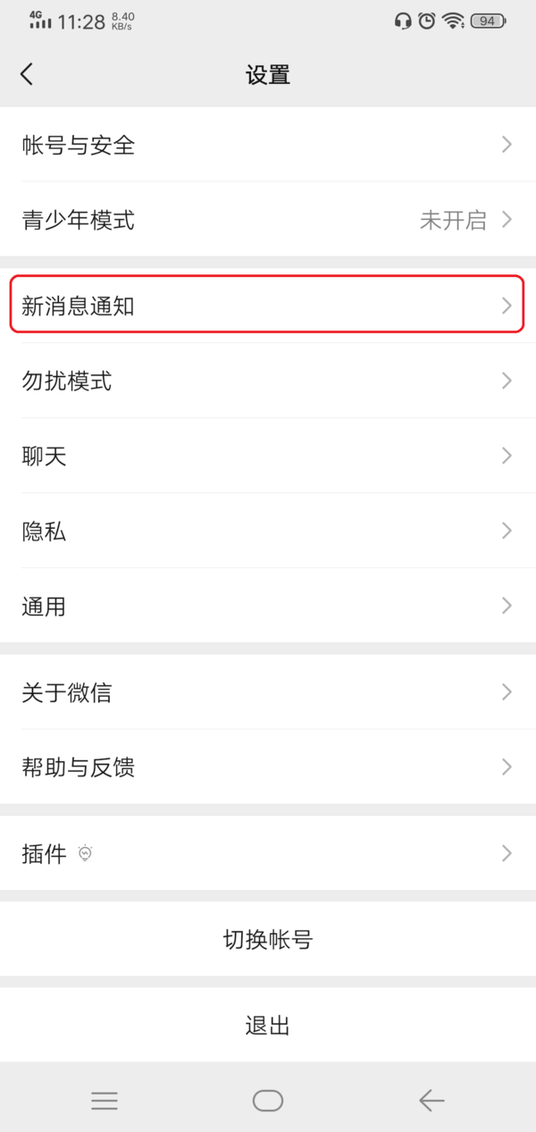第三步,进入到微信的设置界面当中后,找到【新消息通知】选项,并点击打开。