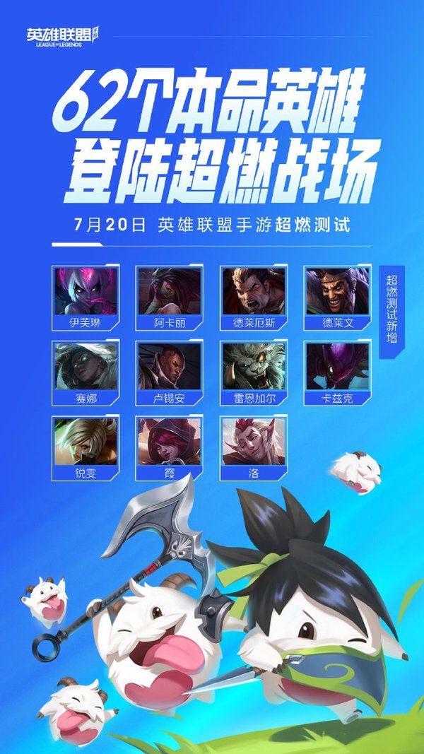 《英雄联盟手游》将于7月20日上午10时正式开启超燃测试,本次测试为基于安卓平台的删档测试,将采用最新版本,包含了更多新英雄、皮肤和新功能。测试期间,5V5匹配、排位赛将会全天开放,备受召唤师期待的极地大乱斗也将在测试过程中再次开放。
