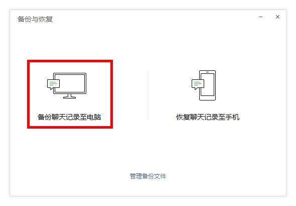 将手机与电脑连接至同一网络后,点击备份聊天记录至电脑。