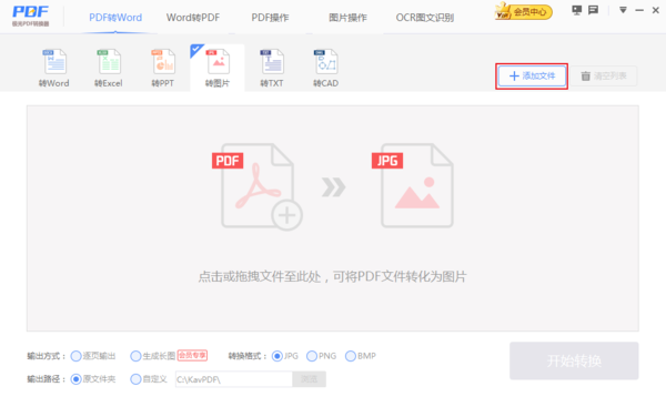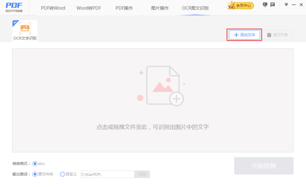 点击添加文件,将需要转换的PDF文档添加到软件中。