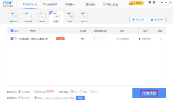 首先打开极光PDF转换器,选择PDF转图片功能。