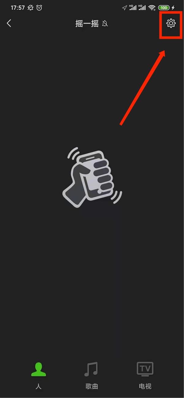 第三步,在摇一摇页面的右上角有设置选项,点开此选项;