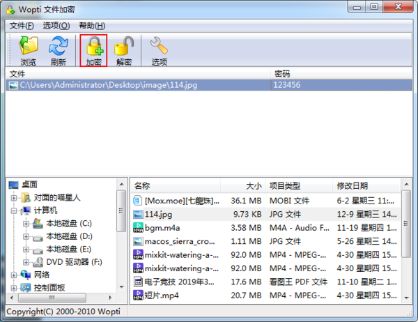 选择需要加密的文件,双击添加到加密列表。