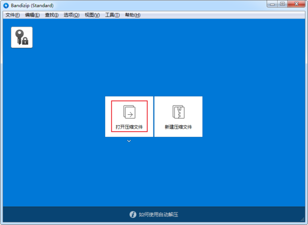 首先打开Bandizip,点击打开压缩文件。