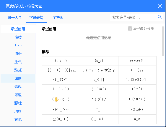 1.在百度输入法上,除了文字和数字符号类的特殊符号之外,还有很多的字符表情和字符画可以选择使用。