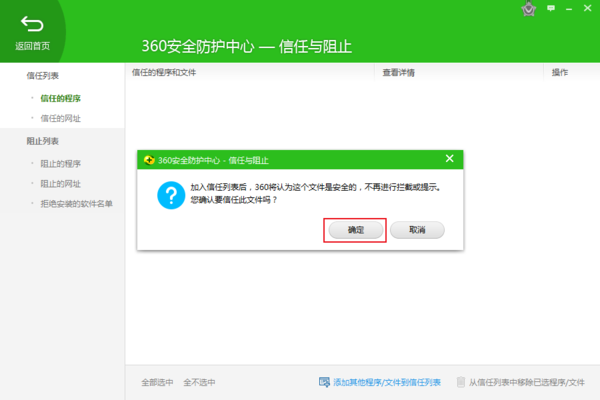 完成以上操作后,选中的软件或文件就被成功添加到信任列表,之后再次运行时就不会被杀毒软件识别并删除了。