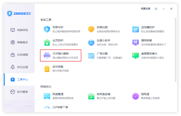 以上就是使用2345安全卫士强力删除顽固文件的方法,借助这款工具我们能够清理大多数无法手动删除的文件和文件夹,节省硬盘空间。