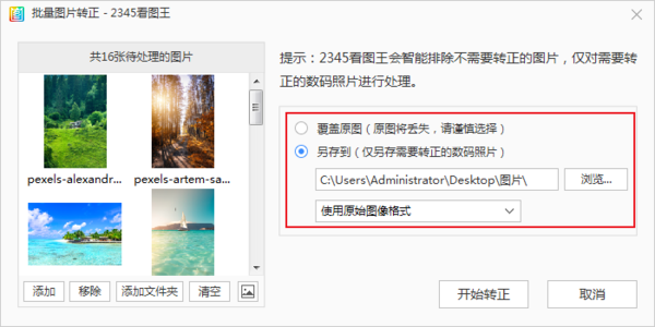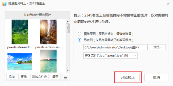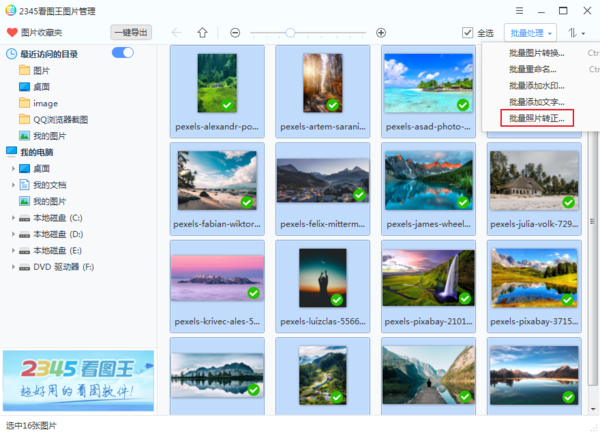 以上就是使用2345看图王批量调整图片方向的步骤,使用这个方法可以快速将选中的图片调整到正常的方向,避免预览时需要手动调整图片方向的麻烦。