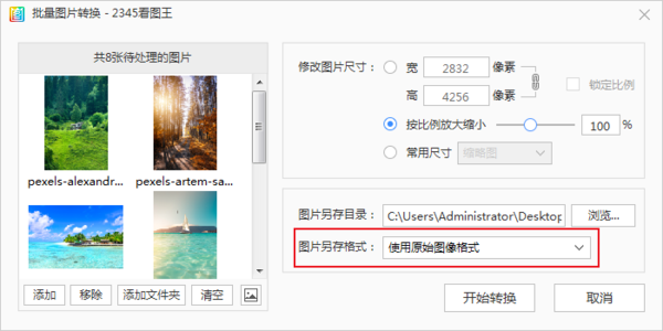 以上就是使用2345看图王批量转换图片格式的方法,在转换格式的同时,2345看图王还支持对图片的尺寸进行批量修改,方便我们后续使用。