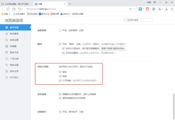 以上就是在2345浏览器中关闭划词助手的方法,由于划词助手提供的功能都可以使用快捷键操作,因此它们的存在并不是很有必要,关闭后还能减少误操作。